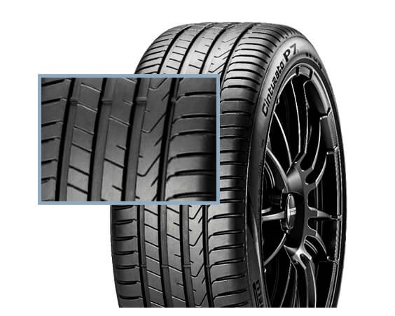 Može se reći da se na prvi pogled guma nove generacije Cinturato razlikuje kako po izmenjenom dizajnu gazišta, tako i po dodatnom znaku od četiri znaka "P7C2".